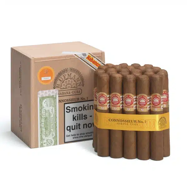 The H. Upmann Connoisseur No. 2 (51 x 134mm) is well-constructed, featuring a smooth, golden-brown wrapper with minimal veins.The draw is generally excellent, with thick and plentiful smoke production.